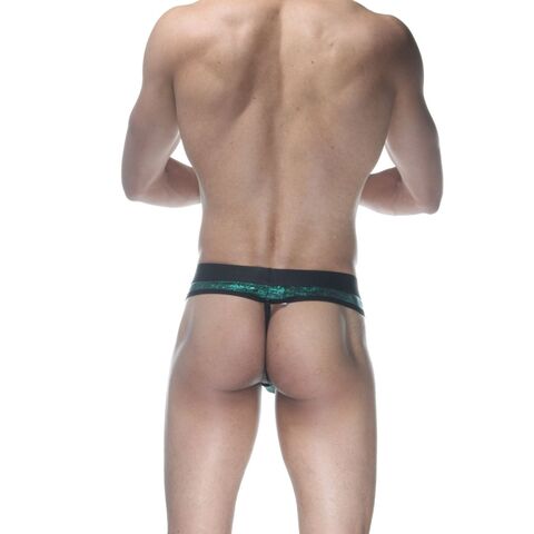 Зеленые блестящие мужские трусы-стринги.