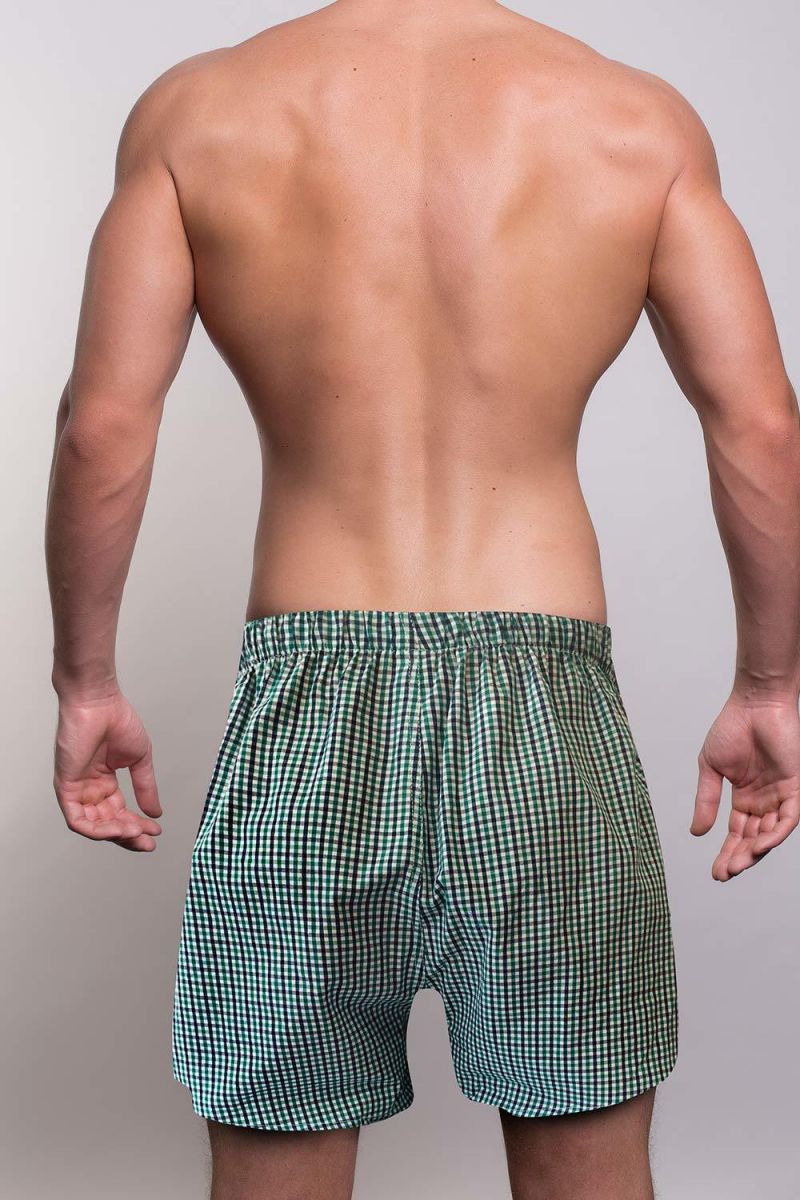 Клетчатые мужские трусы-шорты зеленого цвета.