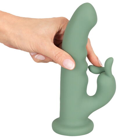 Вибратор-кролик с основанием для присасывания. Вращается и вибрирует в 10 режимах. Стимулирует вагину и клитор одновременно. 2 тихих мотора. Простое кнопочное управление. Кнопка бустера для турбо-оргазмов. Нежная рифленая структура. Супермягкий силикон. Перезаряжаемый - USB-кабель для зарядки в комплекте. Рабочая длина - 14 см.