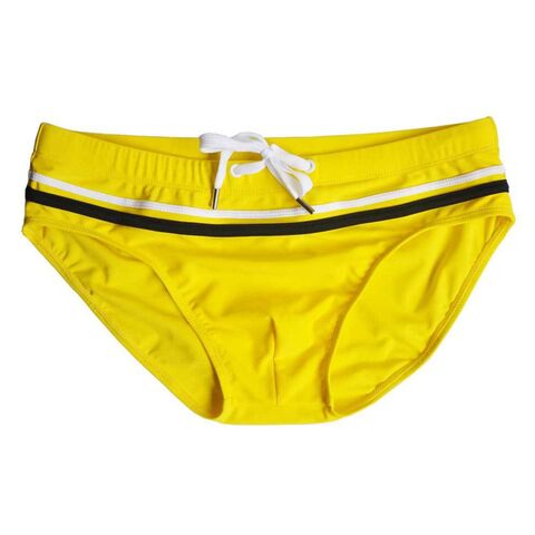 Желтые плавки с двумя контрастными полосками.