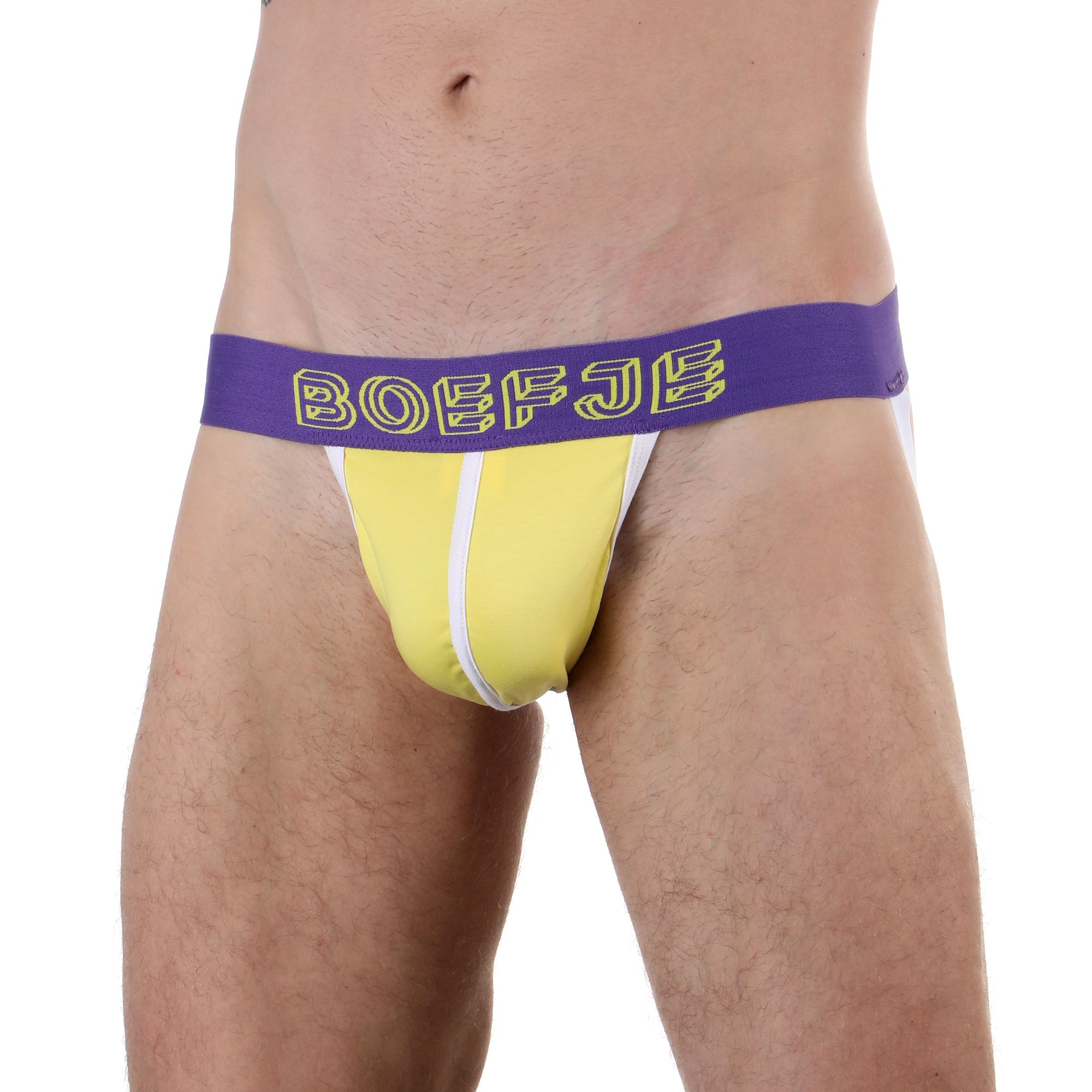 Желтые трусы-джоки с контрастной полосой и брендированным поясом.