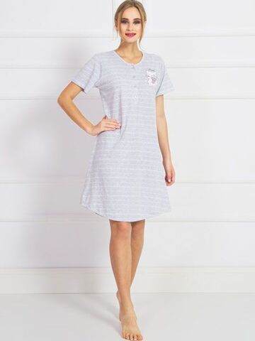 Женская домашняя туника с коротким рукавом на пуговках. Вырез круглый, на груди декор.
