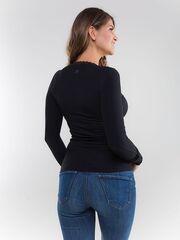 Женская футболка с длинным рукавом, с кружевной отделкой по линии выреза горловины. Соответствие размеров женского белья: 44RUS-2IT-S, 46RUS-3IT-M, 48RUS-4IT-L, 50RUS-5IT-XL, 52RUS-6IT-2XL, 54RUS-7IT-3XL, 56RUS-8IT-4XL, 58RUS-9IT-5XL, 60RUS-10IT-6XL.