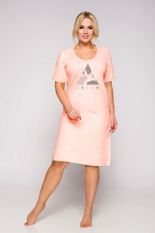 Женская хлопковая сорочка Bella свободного кроя, с коротким рукавом и боковыми разрезами. Сорочка декорирована принтом на груди.