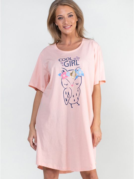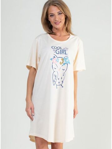 Трикотажная туника с коротким рукавом, из однотонной ткани с принтом в виде совы впереди.