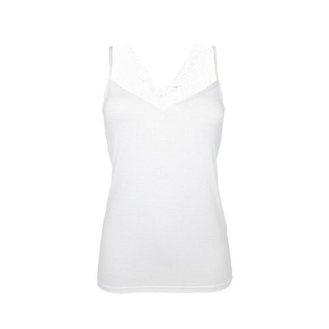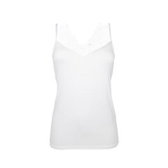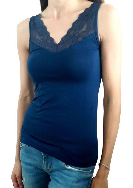 Майка на широких бретелях. Выполнена из эластичной вискозы, область декольте и бретели - из мягкого кружева.