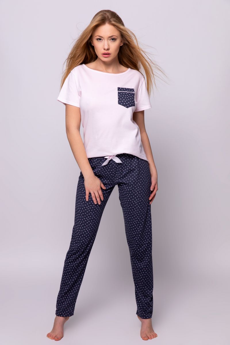 Хлопковая пижама Daisy состоит из футболки и брюк в горошек. Футболка свободного кроя с короткими рукавами, на груди накладной карман. В комплекте: футболка, брюки.