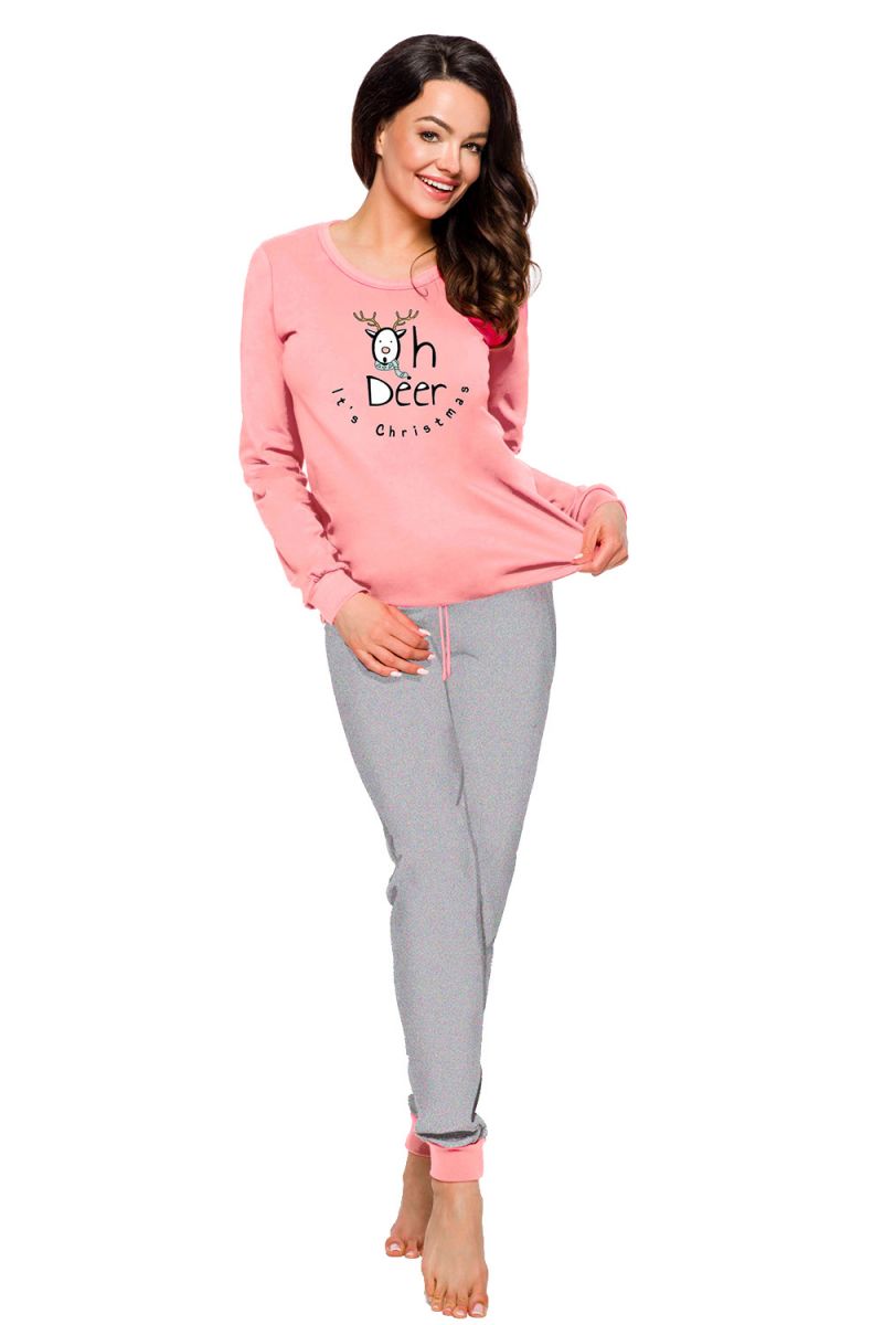 Хлопковая пижама Santa состоит из лонгслива и брюк. Лонгслив свободного кроя, с длинными рукавами, с круглым вырезом горловины. Брюки зауженного кроя с манжетой-резинкой по низу. Пижаму украшает забавный принт. Комплект идеально подходит для сна и в качестве домашнего костюма. В комплекте: лонгслив, брюки.