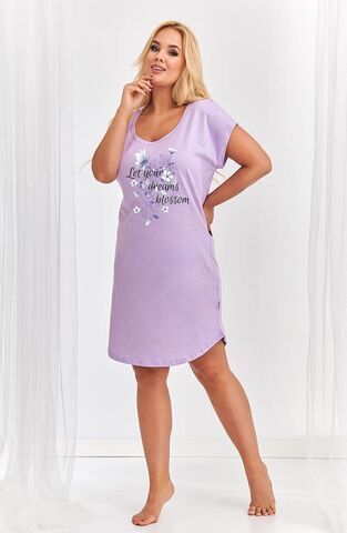 Сорочка Agnieszka для дам с пышными формами выполнена из хлопкового полотна. Изделие свободного кроя, с короткими рукавами, круглым вырезом горловины, декорировано цветочным принтом. Сорочку можно использовать как домашнее платье.