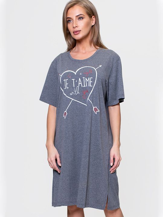 Трикотажная туника с коротким рукавом, из однотонной ткани с принтом впереди.