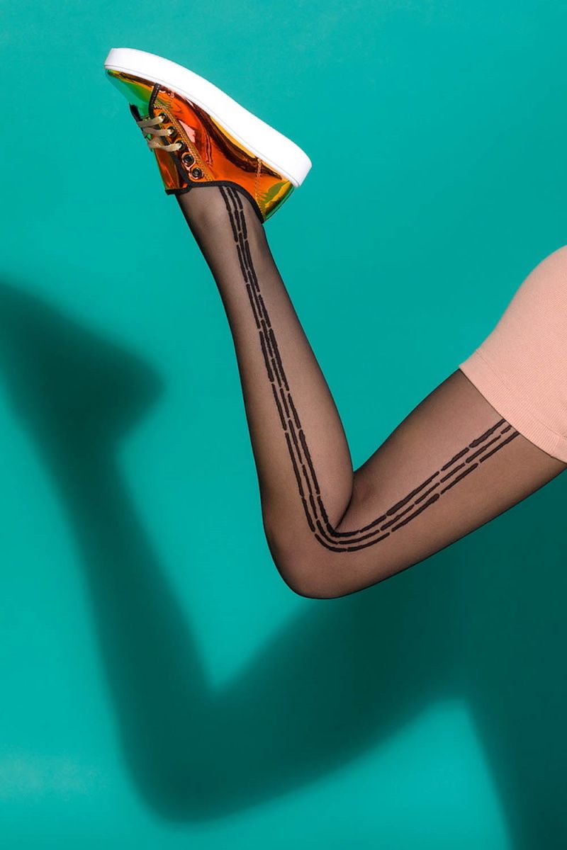 Женские колготки Kaya с оригинальными полосками на внешней стороне ног. Невидимое усиление на пальцах и хлопковая ластовица с плоским швом гарантируют удобство и комфорт использования.