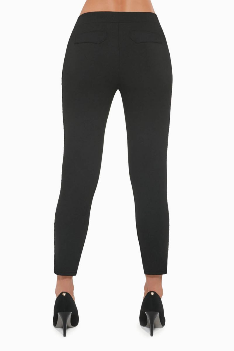 Женские легинсы-брюки Oriana с карманами выполнены из эластичного крепа, по бокам лампасы. Плотность - 200 ден.