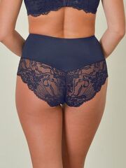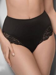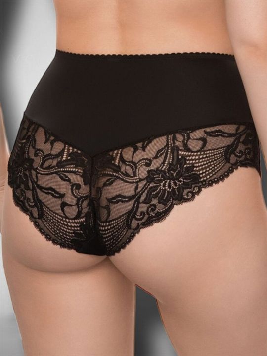 Женские трусики с высокой линией талии. По ножкам и талии обработаны простым зиг-загом. Украшены кружевом по ножкам спереди и сзади. Выполнены из объемного эластичного кружева с блеском и микрофибры. Внимание: европейские размеры! Для определения российского размера необходимо прибавить 6!
