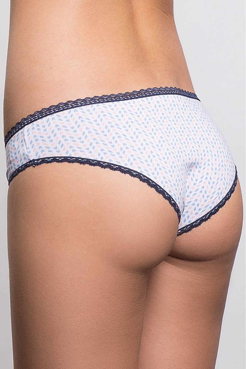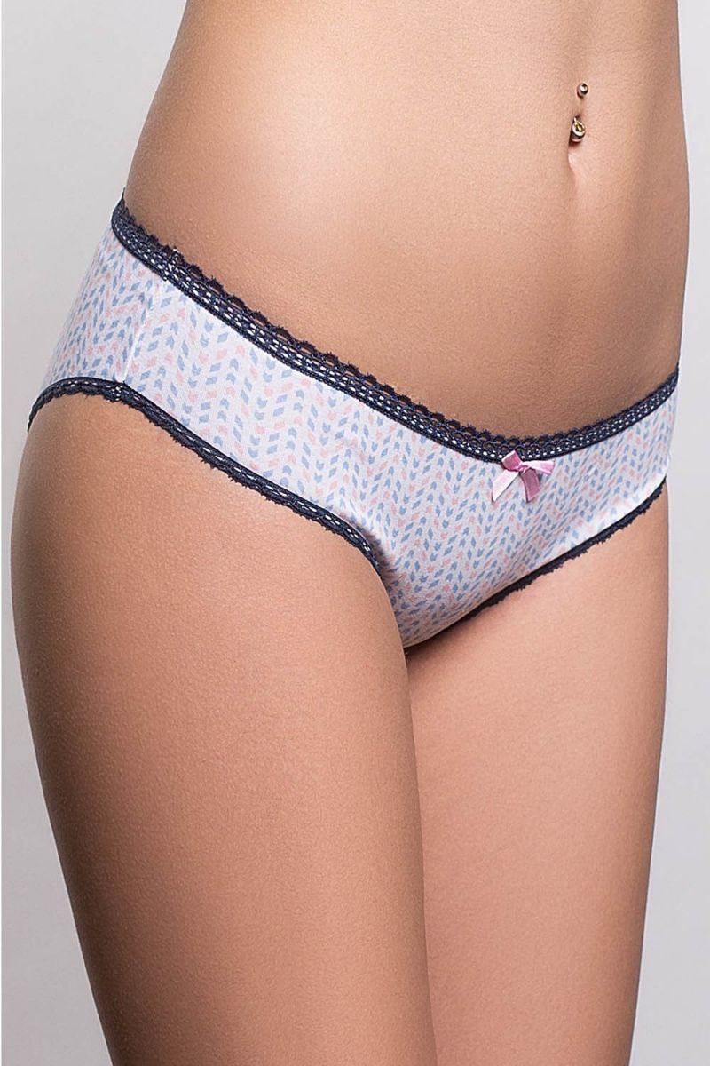 Хлопковые женские трусы-слипы с принтом. Все срезы декорированы отделкой с ажурным краем.