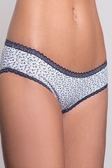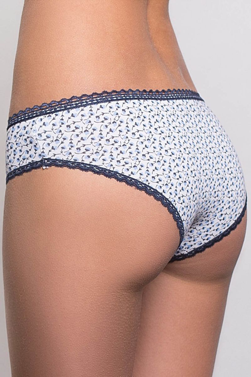 Хлопковые женские трусы-слипы с нежным цветочным принтом. Все срезы декорированы отделкой с ажурным краем.