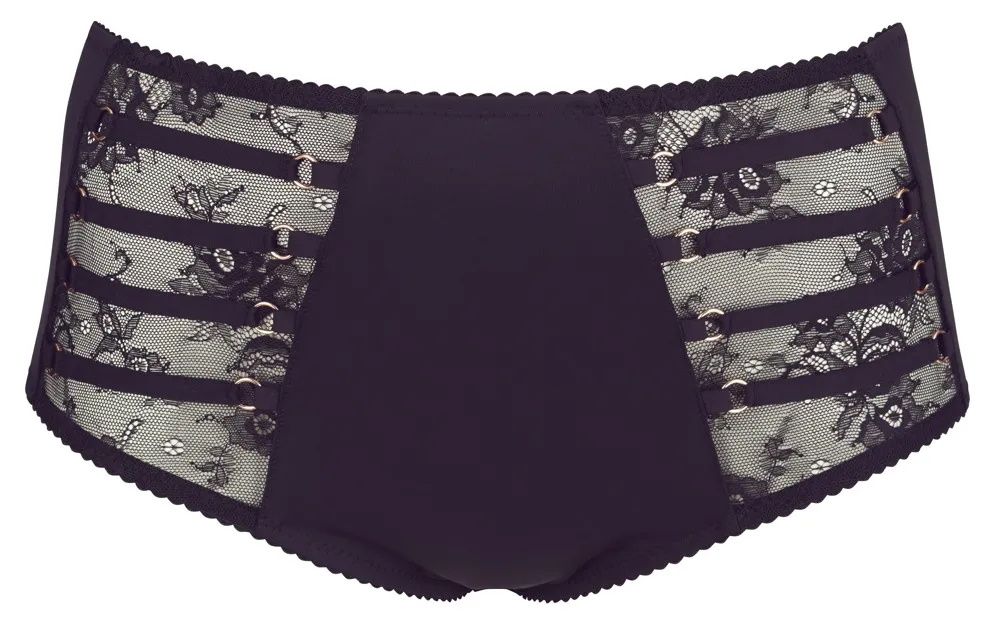 Женские трусы с кружевными вставками спереди и колечками цвета розового золота. Эластичные, с хорошей посадкой.
