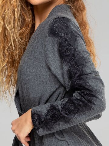 Женский домашний халат-кардиган, с запахом, на поясе. Мягкий трикотаж «в рубчик» из вискозы приятно ласкает кожу. Простая и комфортная модель имеет свою «изюминку» - кружевные лампасы на рукавах.