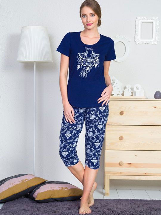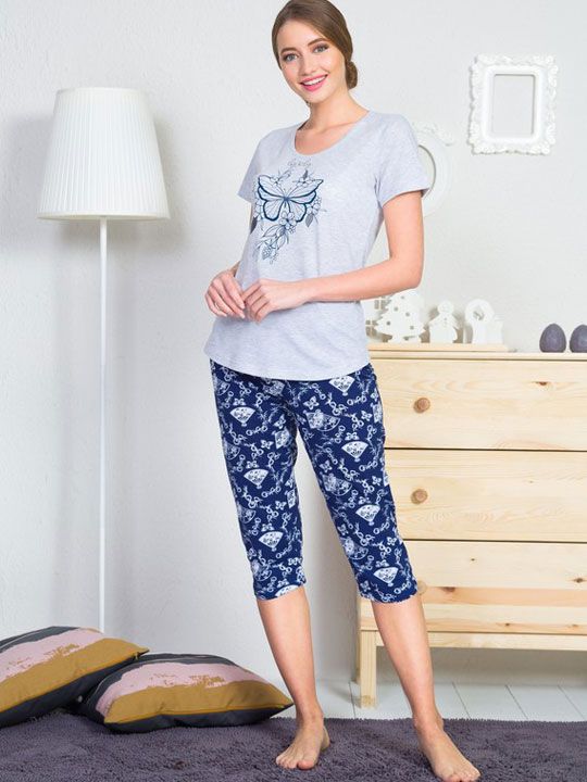 Женский домашний комплект: футболка с коротким рукавом и капри. В комплекте: футболка, капри.