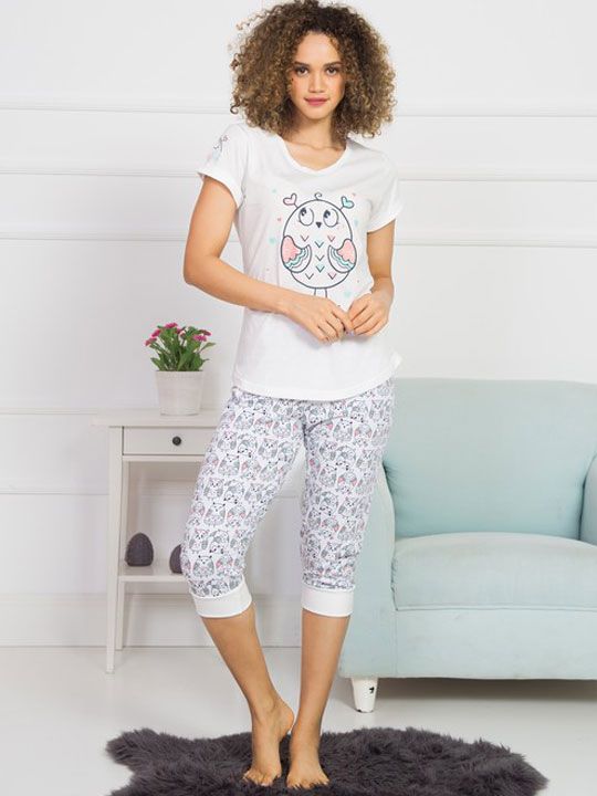 Женский домашний комплект: футболка с коротким рукавом и бриджи. В комплекте: футболка, бриджи.