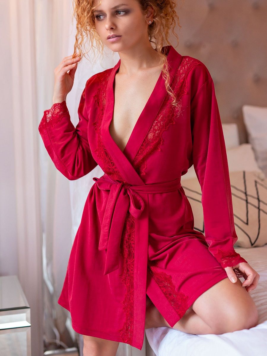 Женский халат-кардиган с отделкой кружевом в тон основной ткани из уникального по составу и технологии производства материала, который по своим тактильным качествам идентичен натуральному шелку: воздухопроницаемый, антистатический, легко драпируемый, мягкий и приятный на ощупь.
