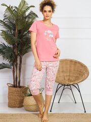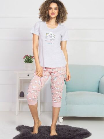 Женский домашний комплект: футболка с коротким рукавом и бриджи. В комплекте: футболка, бриджи.