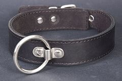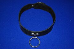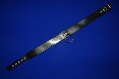 Ошейник подшитый. Застежка- ремешок с металлической пряжкой. С 1-им кольцом в центре для фиксации элементов бандажа. Ошейник в BDSM может иметь различные назначения. Он может использоваться в качестве антуража для создания образа. Может использоваться в практическом назначении как один из связующих элементов бандажа. А самое главное - он имеет глубокое психологическое значение, так как ошейник это основная эмблема подчинения и наказания. Ширина - 2,5 см.