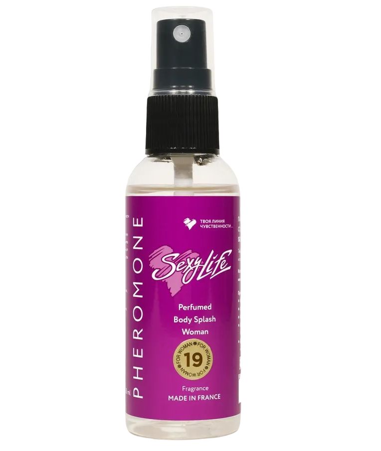 Парфюмированный спрей для тела Sexy Life с феромонами и афродизиаками для женщин. Уникальное сочетание манящего парфюма с феромонами окутает ваше тело волшебной аурой нежного и чувственного аромата. Семейство ароматов: восточные, цветочные. Верхние ноты: апельсин, мандарин, бергамот, цветок апельсина. Средние ноты: турецкая роза, жасмин, мимоза, иланг-иланг. Базовые ноты: пачули, белый мускус, ваниль, ветивер, бобы тонка.