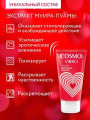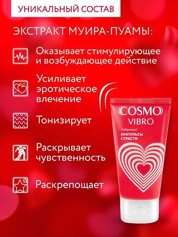 Ключ к яркому сексу - стимулирующий лубрикант нового поколения на силиконовой основе Cosmo vibro. Это больше, чем просто лубрикант! Активный компонент в составе - экстракт муира-пуамы - оказывает необычное стимулирующее действие, вызывая нежную «вибрацию» и возбуждающие «мурашки».