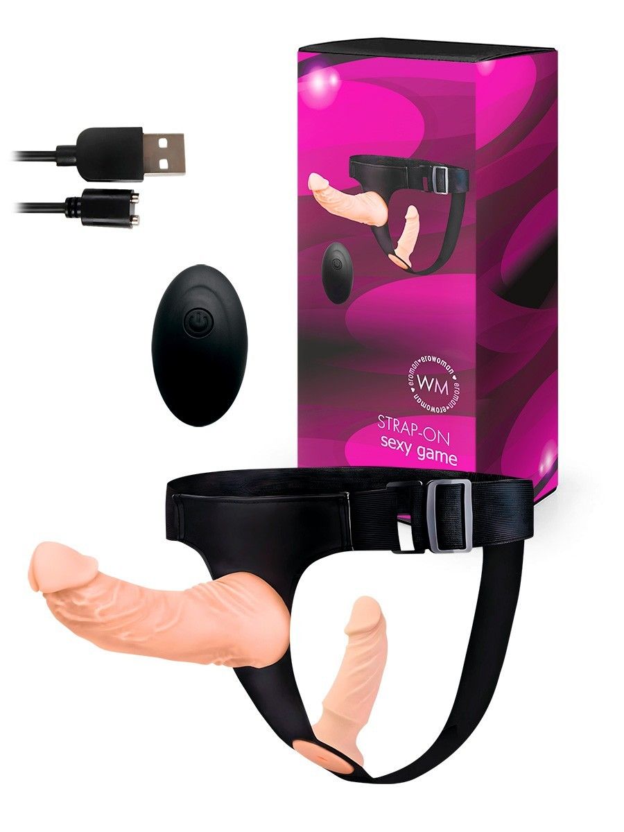 Женский страпон с 2 насадками, вибрацией и пультом ДУ