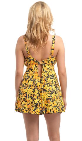 Жёлтый пляжный топ-танкини с цветочным принтом