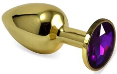 Золотистая анальная пробка с фиолетовым кристаллом - 5,5 см.