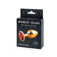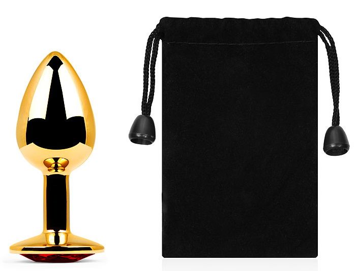 Золотистая анальная пробка с красным стразом - 7,2 см.