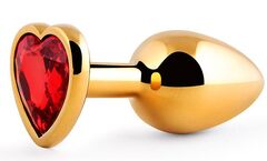 Золотистая анальная пробка с красным стразом-сердечком - 8 см.