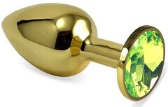 Золотистая анальная пробка с лаймовым кристаллом - 8,5 см.