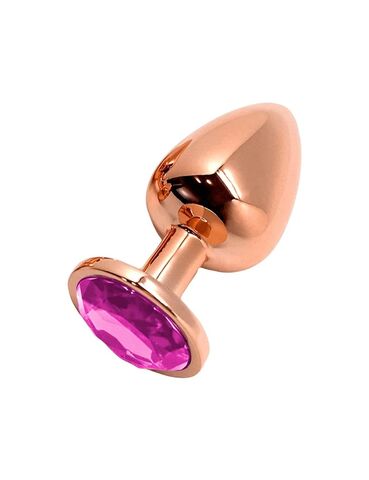 Золотистая анальная втулка Wooomy Tralalo M с розовым кристаллом - 8 см.