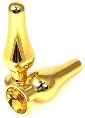 Золотистая удлиненная анальная пробка с оранжевым кристаллом - 8 см.