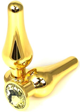 Золотистая удлиненная анальная пробка с желтым кристаллом - 11,5 см.