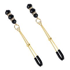 Зажимы на соски с подвеской из бусин и страз служат дополнительным стимулятором одной из самых чувствительных зон. Включают в себя 2 полностью регулируемых многофункциональных зажима. Имеют мягкие наконечники и подвески из бусин и страз, которые одновременно служат украшением и своеобразным утяжелителем для дополнительных ощущений.