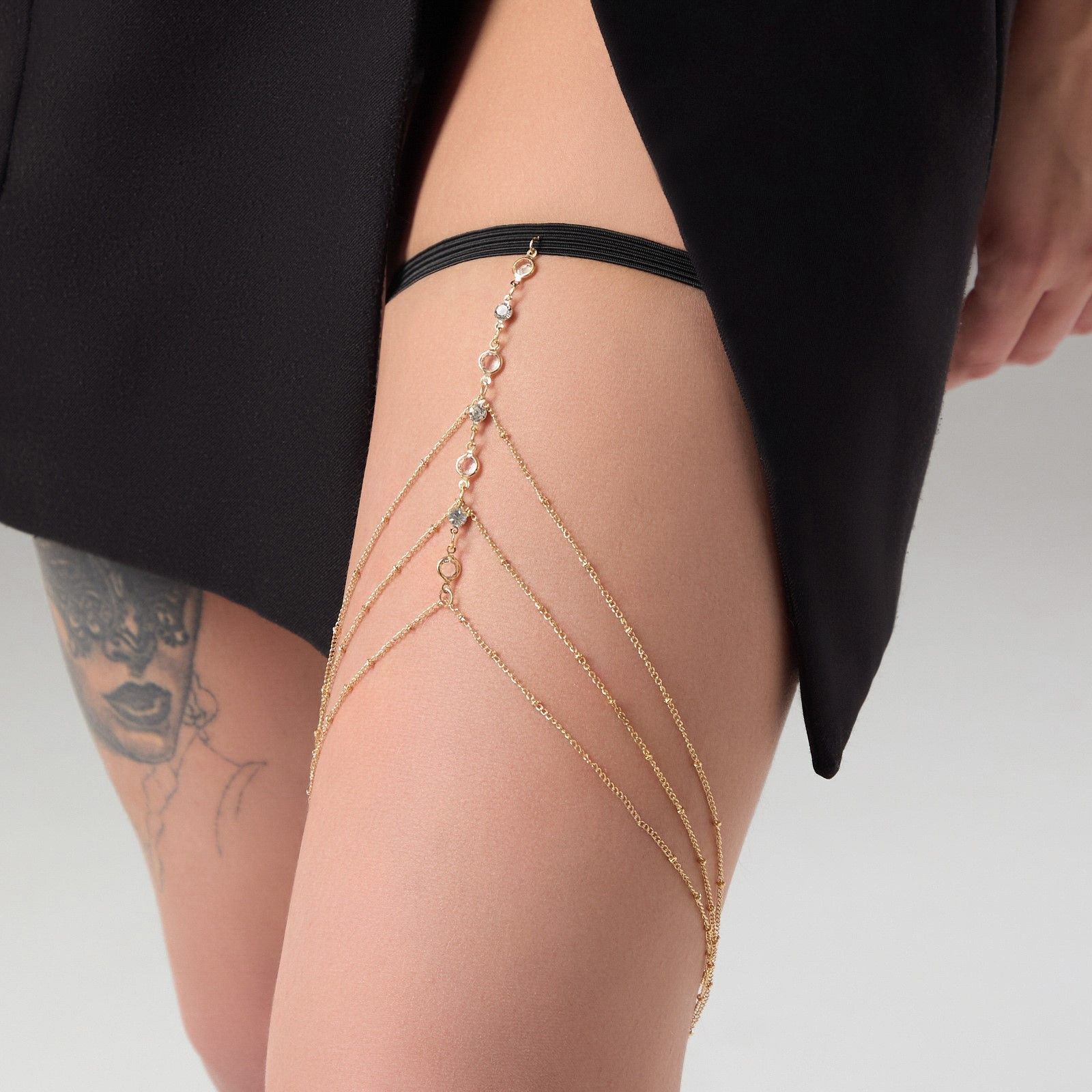 Металлический аксессуар на бедро с оригинальным дизайном. Крепление на ноге при помощи резинки.
