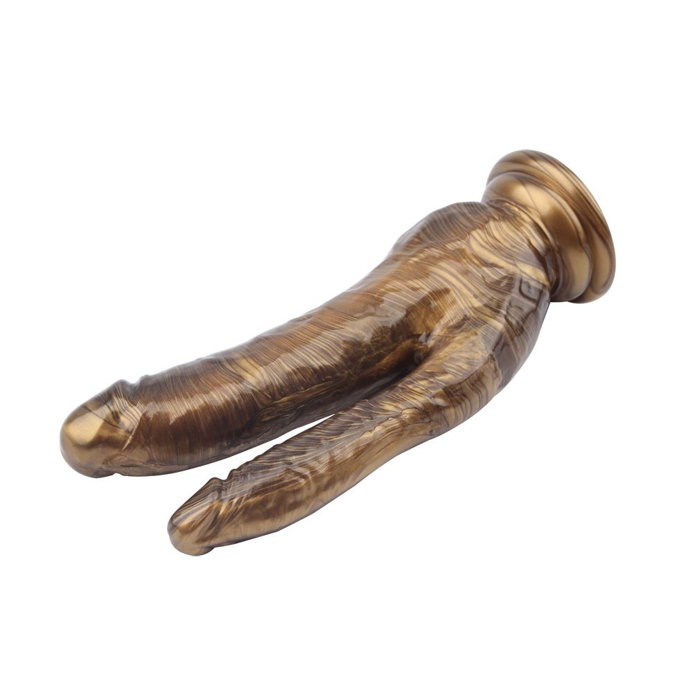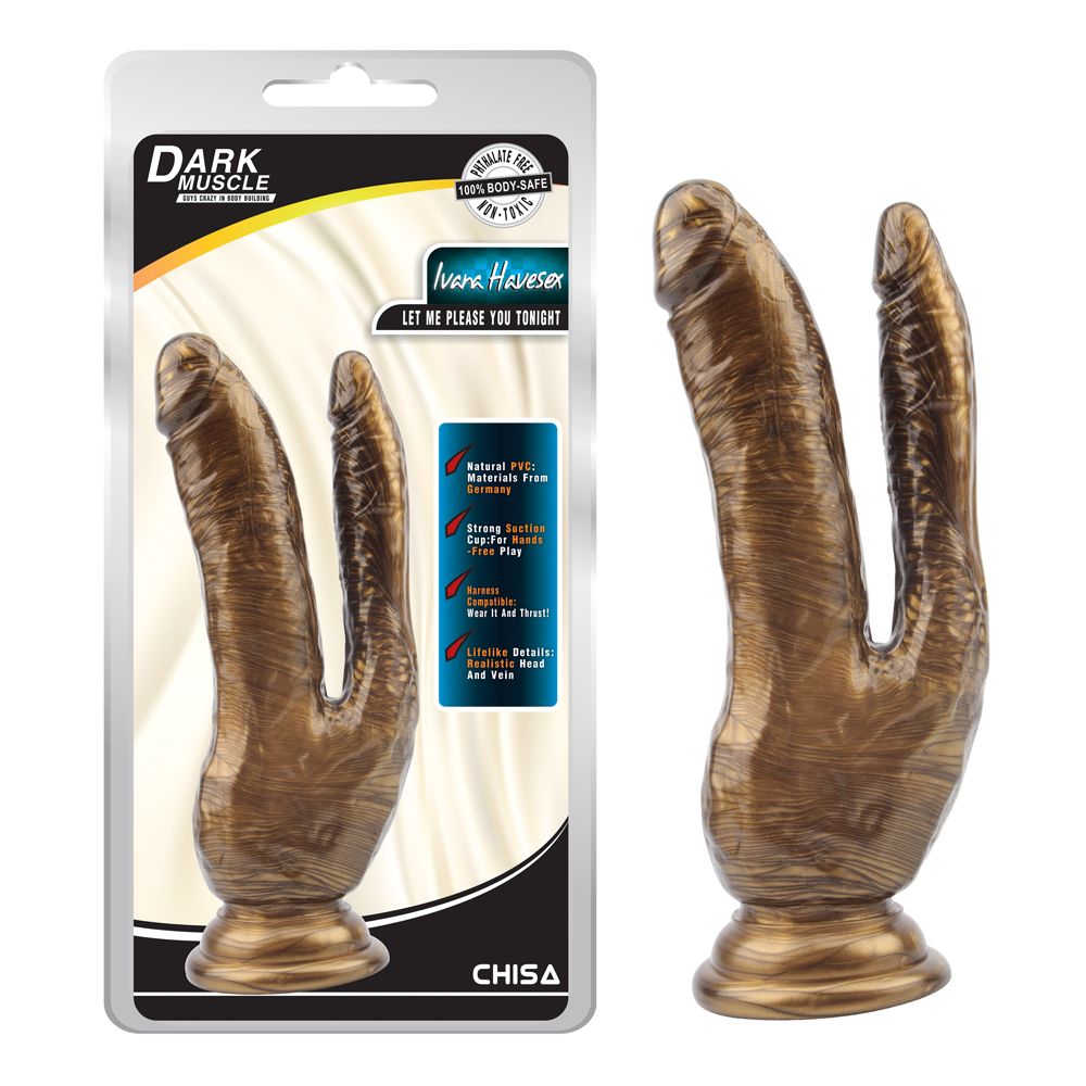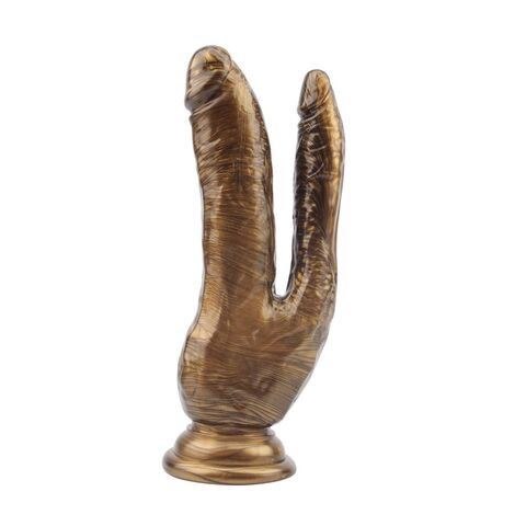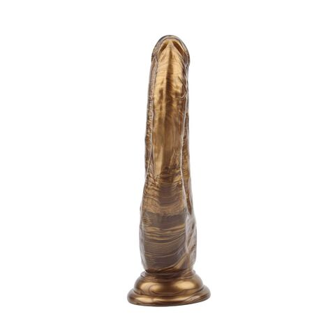 Золотистый анально-вагинальный фаллоимитатор Ivana Havesex. Реалистичные формы, присоска в основании для фиксации на плоскости.