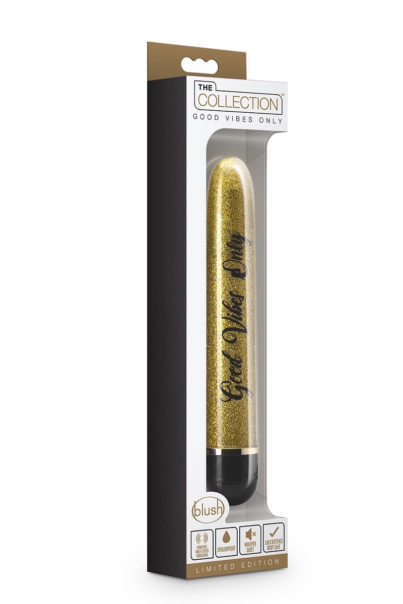 Золотистый классический вибратор Good Vibes Only. Мультискоростная вибрация.