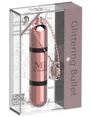 Мини-вибратор на цепочке Glittering Bullet. Высококачественный мини-вибратор, исполненный в виде брелока — с цепочкой и кольцом. 8 режимов вибрации по 3 скорости в каждом. Цепочка изготовлена из цинкового сплава. Встроенный аккумулятор с USB зарядкой. Время зарядки - 1 час.